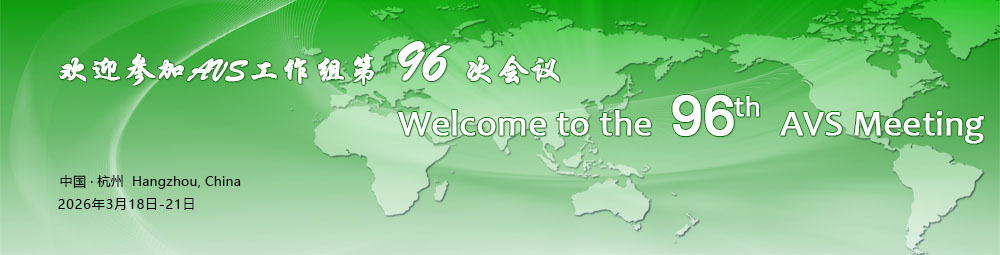 - AVS工作组第九十六次会议即将于2026年3月18日-21日(为期四天)在杭州举行。视频组预备会议将于3月18日(周三)下午13:30召开;总体组预备会议将于3月18日(周三)下午17:30召开;开幕式全体会议将于3月19日(周四)9:00召开;闭幕式全体会议将于3月21日(周六)13:30召开,欢迎各会员单位派出代表参会。